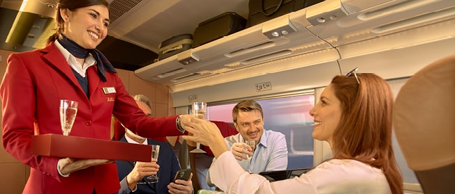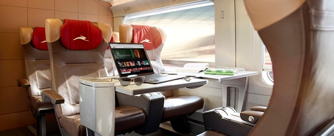Settle into spacious leather armchairs and enjoy a journey designed for relaxation. With complimentary access to the Italo Club Lounges at the station and a curated catering service served onboard, Club Executive makes your journey through Italy unforgettable. Choose your ideal seat, stay connected with free Wi-Fi, and travel worry-free with generous luggage space.