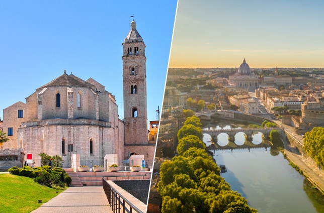 Travelling from Barletta to Rome by train is a fast and economical journey. The Barletta-Rome route is 425 km long and the journey with Italo takes 3 hours and 35 minutes. The price of this trip starts at 12,90, a convenient price to enjoy a round trip to visit beautiful Rome.