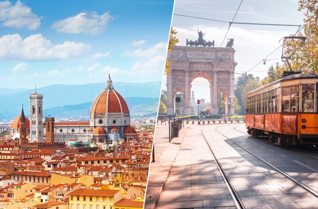 Travelling from Florence to Milan by train is a fast and economical journey. The Florence-Milan route is 306 km long and the journey with Italo takes 1 hour and 43 minutes. The price of this trip starts at 17,90, a convenient price to enjoy a round trip to visit beautiful Milan.