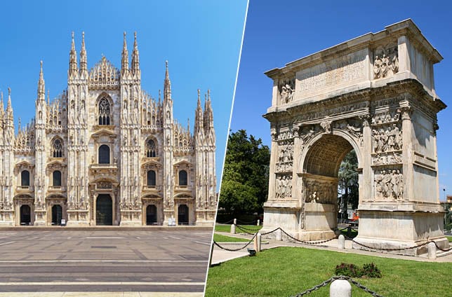 Travelling from Milan to Benevento by train is a fast and economical journey. The Milan-Benevento route is 824 km long and the journey with Italo takes 5 hours and 55 minutes. The price of this trip starts at 34,90, a convenient price to enjoy a round trip to visit beautiful Benevento.