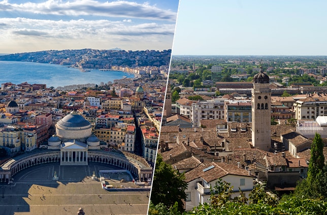 Travelling from Naples to Conegliano by train is a fast and economical journey. The Naples-Conegliano route is 784 km long and the journey with Italo takes 5 hours and 50 minutes. The price of this trip starts at 38,90, a convenient price to enjoy a round trip to visit beautiful Conegliano.