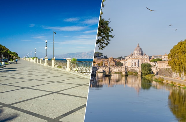 Travelling from Reggio Di Calabria to Rome by train is a fast and economical journey. The Reggio Di Calabria-Rome route is 671 km long and the journey with Italo takes 5 hours and 38 minutes. The price of this trip starts at 24,90, a convenient price to enjoy a round trip to visit beautiful Rome.