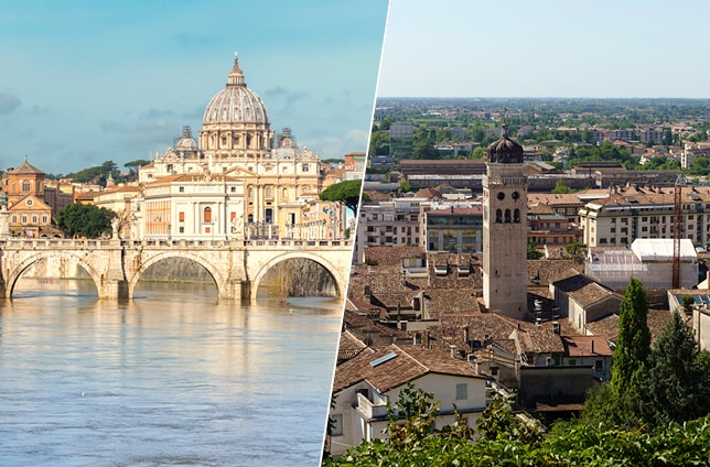 Travelling from Rome to Conegliano by train is a fast and economical journey. The Rome-Conegliano route is 562 km long and the journey with Italo takes 4 hours and 20 minutes. The price of this trip starts at 31,90, a convenient price to enjoy a round trip to visit beautiful Conegliano.