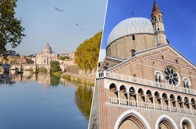 Travelling from Rome to Padova by train is a fast and economical journey. The Rome-Padova route is 477 km long and the journey with Italo takes 3 hours and 18 minutes. The price of this trip starts at 27,90, a convenient price to enjoy a round trip to visit beautiful Padova.