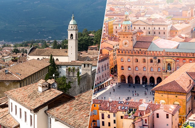 Travelling from Rovereto to Bologna by train is a fast and economical journey. The Rovereto-Bologna route is 182 km long and the journey with Italo takes 1 hour and 44 minutes. The price of this trip starts at 11,90, a convenient price to enjoy a round trip to visit beautiful Bologna.