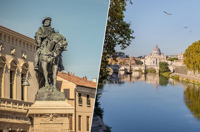 Travelling from Rovigo to Rome by train is a fast and economical journey. The Rovigo-Rome route is 434 km long and the journey with Italo takes 2 hours and 54 minutes. The price of this trip starts at 21,90, a convenient price to enjoy a round trip to visit beautiful Rome.