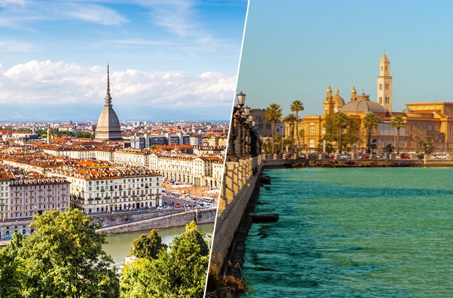 Travelling from Turin to Bari by train is a fast and economical journey. The Turin-Bari route is 1196 km long and the journey with Italo takes 9 hours and 29 minutes. The price of this trip starts at 38,90, a convenient price to enjoy a round trip to visit beautiful Bari.