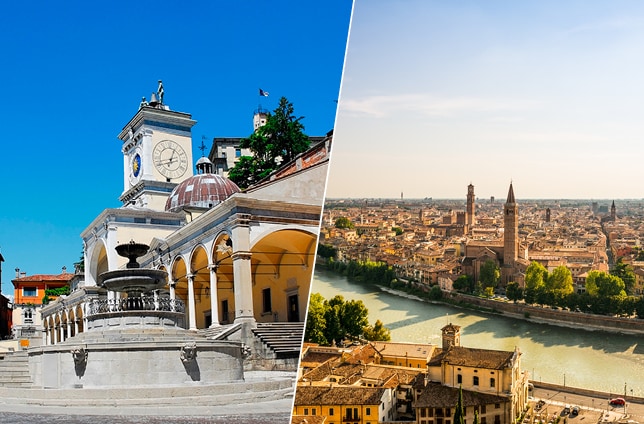 Travelling from Udine to Verona by train is a fast and economical journey. The Udine-Verona route is 245 km long and the journey with Italo takes 2 hours and 51 minutes. The price of this trip starts at 13,90€, a convenient price to enjoy a round trip to visit beautiful Verona.
