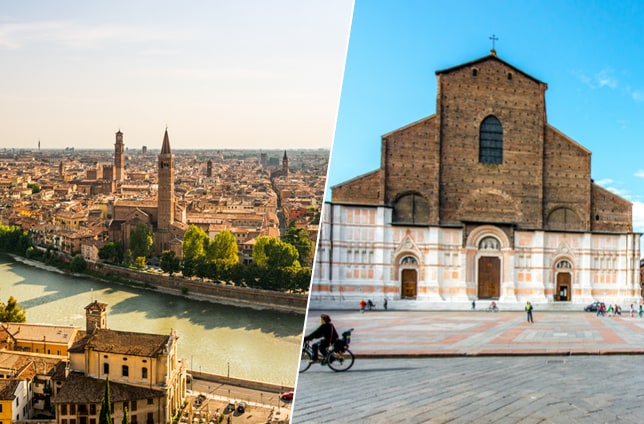 Travelling from Verona to Bologna by train is a fast and economical journey. The Verona-Bologna route is 115 km long and the journey with Italo takes 52 minutes. The price of this trip starts at 8,90€, a convenient price to enjoy a round trip to visit beautiful Bologna.