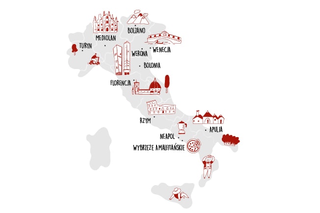 Wybierz Italo, by poznać Włochy, podróżując z dużą prędkością. Jedź do Mediolanu, Wenecji, Werony, Rzymu, Florencji, Bolonii, Neapolu oraz do wielu innych przepięknych miast. W pociągu masz do dyspozycji bezpłatne Wi-Fi, trzy klasy do wyboru, usługę restauracyjną, a na dworcach możesz korzystać ze strefy Italo Club Lounge, by móc wygodnie poczekać na przyjazd pociągu.