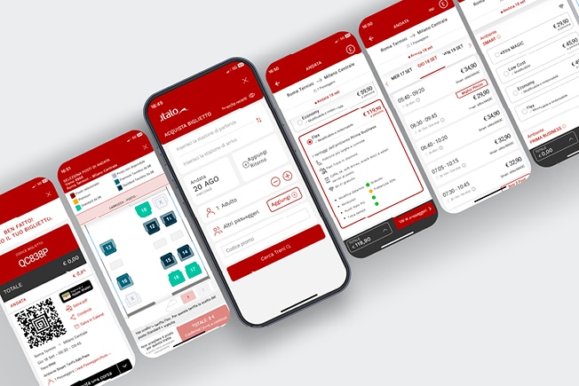 Scarica gratuitamente l'app Italo Treno da App Store, Google Play o App Gallery, disponibile per tutti i dispositivi!