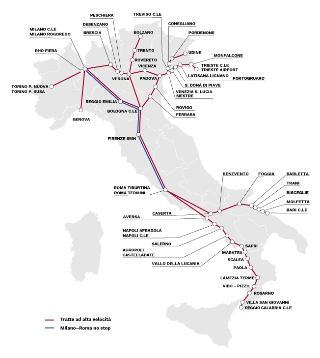 50 città e 57 stazioni ti aspettano in tutta Italia per vivere un viaggio veloce, sicuro e ricco di comfort.