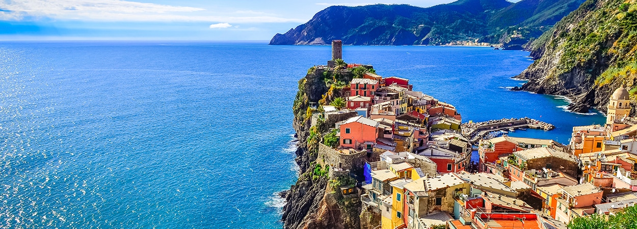 Un borgo delle Cinque Terre in cui domina la vegetazione tipica mediterranea e dove le abitazioni che si affacciano sul mare sono dipinte di colori accesi e si sviluppano in altezza. In centro potrete vedere il Castello di Riomaggiore, costruito nel 1260 su uno sperone di roccia e dal quale potrete godere di una vista stupenda.